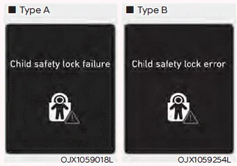 When electronic child safety lock does not work even though the button is pressed, the message will be displayed and an alarm will sound. If this occurs, have the vehicle be inspected by an authorized HYUNDAI dealer.