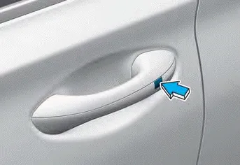 To lock the doors, press the button on the outside door handle while carrying the smart key with you or press the door lock button on the smart key.