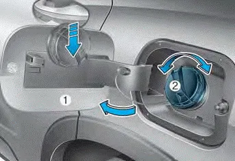4. Pull the fuel filler door (1) outward to access the fuel tank cap.