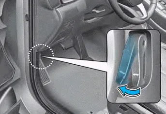 Keep the door into LOCK position when the vehicle is being washed (for example, high pressure washer, automatic car washer, etc.)