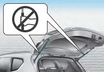 Do not hold the part (gas lifter) that supports the liftgate. Be aware that the deformation of the part may cause vehicle damage and a risk of injury.