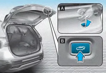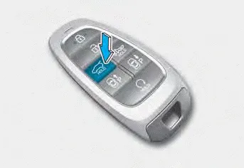 2. Press and hold the liftgate open button on the remote key or smart key. Press the liftgate handle button and open the liftgate.