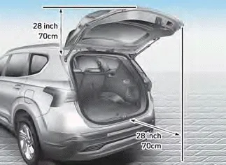 The smart liftgate detecting area extends approximately 20~40 in. (50~100 cm) behind the vehicle. If you are positioned in the detecting area and are carrying the smart key, the hazard warning lights will blink and the chime will sound to alert you that the smart liftgate will open.
