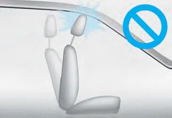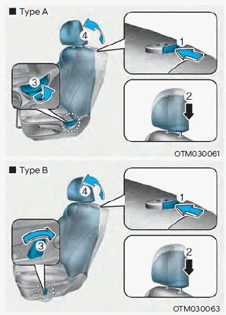 If you recline the seatback towards the front with the head restraint and seat cushion raised, the head restraint may come in contact with the sunvisor or other parts of the vehicle.