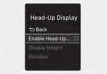 ‘Display Height’ and ‘Content Selection’ of the Head-Up Display.