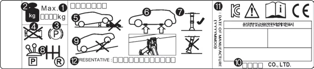The actual Jack label in the vehicle may differ from the illustration. For more detailed specifications, refer to the label attached to the jack.