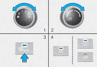 4. The outside (fresh) air and air conditioning (if equipped) will be selected automatically.