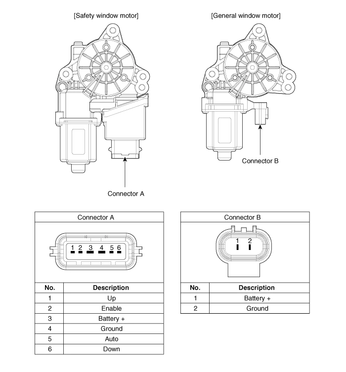 Component Location 1. DAU (Door Area Unit) 2. Assist window switch 3. Front window motor 4. Rear window motor 5.