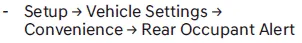 To use Rear Occupant Alert, it must be enabled from the Settings menu in the