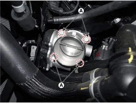 Remove the installation bolts (A), and then remove the ETC module from