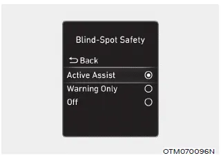 With the engine on, select ‘Driver Assistance → Blind-Spot Safety’ from the Settings menu to set whether or not to use each function.