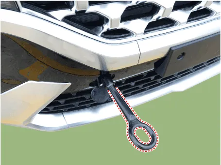 The tow truck uses metal cables with hooks on the ends. These hooks