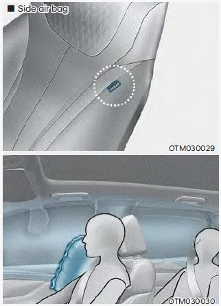 The side air bags on both sides of the vehicle are designed to deploy when a rollover is detected by a rollover sensor. (if equipped with rollover sensor)