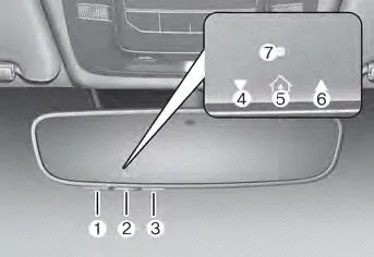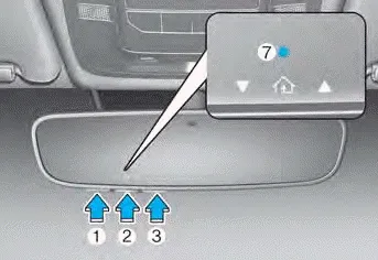 1. Press and release the HomeLink button (1), (2) or (3), you would like to program. The HomeLink indicator light (7) will flash orange slowly (if not, perform the steps of “Erasing HomeLink Buttons” section, and start over).