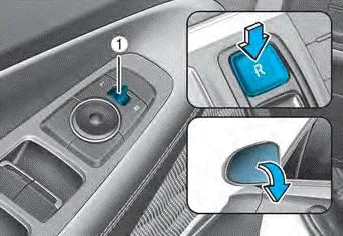 1. Move the lever (1) either to the L (left side) or R (right side) to select the side view mirror you would like to adjust.