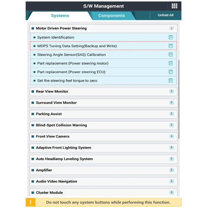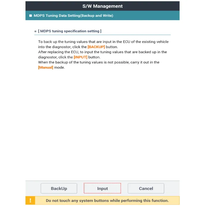 Select the "MDPS Tuning Data Setting(Backup and Write)"