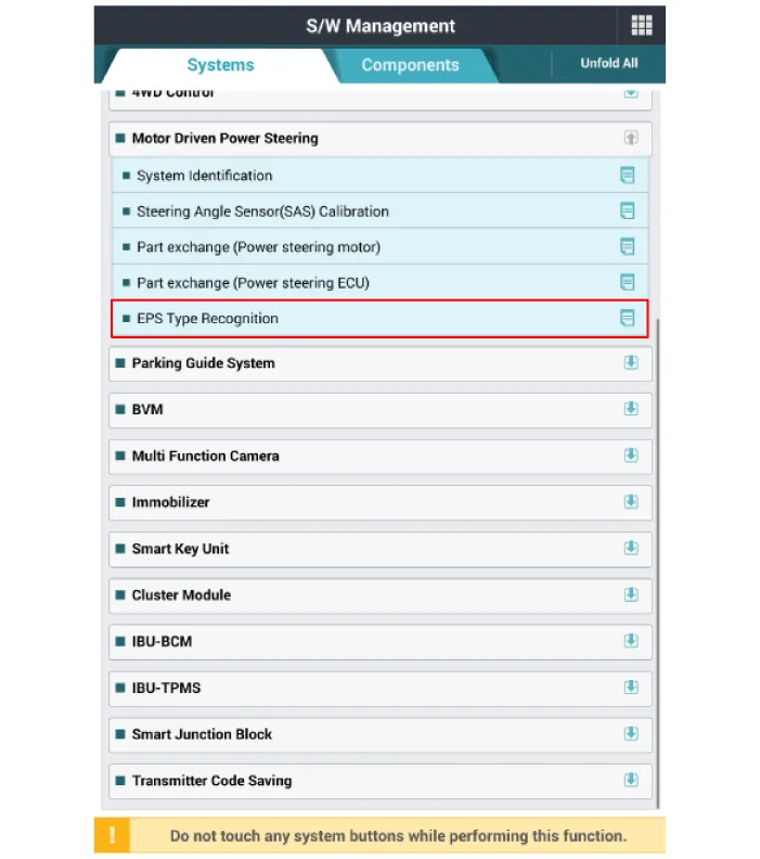 After Selecting the "vehicle model" and "system", select the "EPS Type