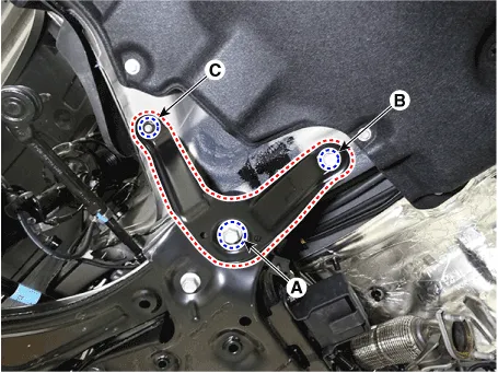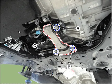 Remove the sub frame stay after loosening the mounting bolts (A, B)