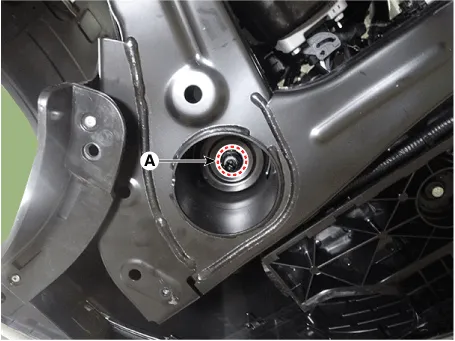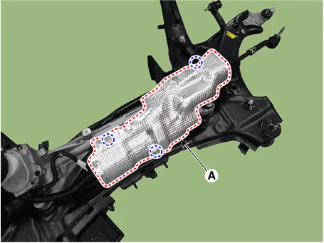 Remove the muffler rubber hanger (A) from the sub frame after loosening