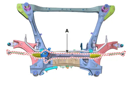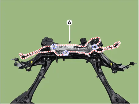 Remove the steering gearbox (A) from the front sub frame by loosening