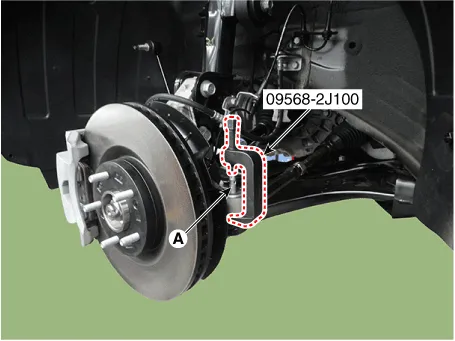 Remove the tie rod end ball joint (A) using the SST (09568-2J100).