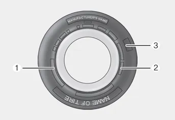 Any tires that are over six years old, based on the manufacturing date, (including the spare tire) should be replaced by new ones. You can find the manufacturing date on the tire sidewall (possibly on the inside of the wheel), displaying the DOT Code. The DOT Code is a series of numbers on a tire consisting of numbers and English letters. The manufacturing date is designated by the last four digits (characters) of the DOT code.