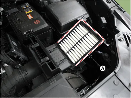 Replace the air cleaner element (A) with a new one.