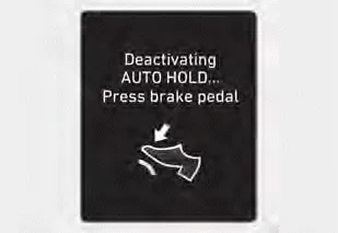 If you did not apply the brake pedal when you release Auto Hold by pressing the AUTO HOLD switch, a warning will sound and a message will appear.