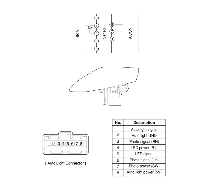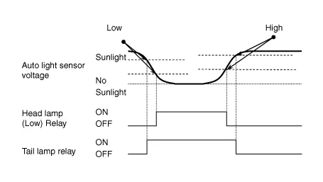 sensor 2. Head lamps 3. Lighting switch (Auto) |