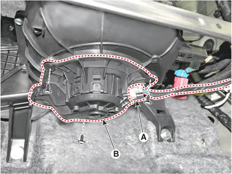 Press the lock pin (B) and then remove the crash pad under cover (A).