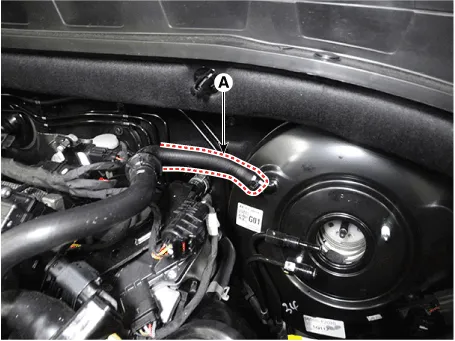 Remove the fixing clip and the vacuum hose (A) from the brake booster.