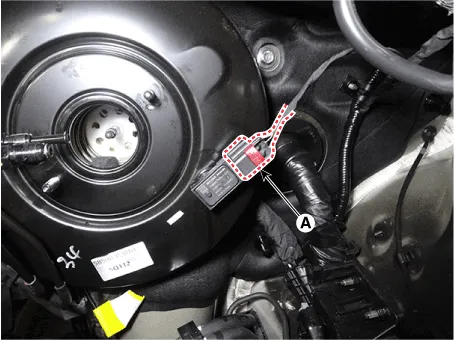 Disconnect the brake booster vacuum pressure sensor connector (A).