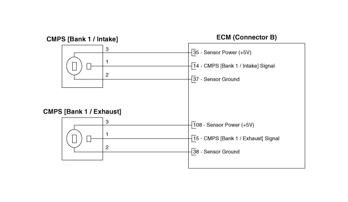 Description Camshaft Position Sensor (CMPS) is a hall sensor and detects the camshaft position by using a hall element. It is related with Crankshaft Position Sensor (CKPS) and detects the piston position of each cylinder which the CKPS can't detect.