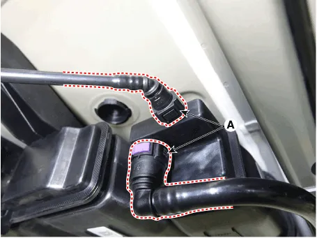 Turn the ignition switch OFF and disconnect the battery (-) terminal.