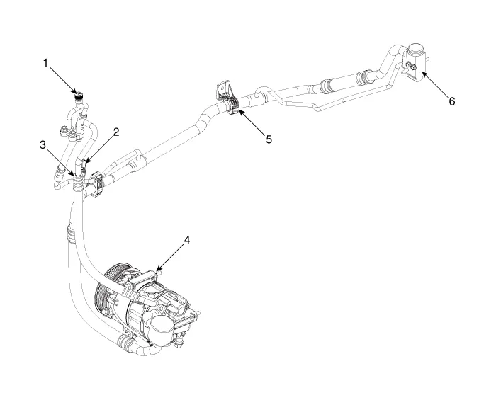 (High pressure) 2. A/C pressure transducer (APT) 3. Service port (Low pressure) |