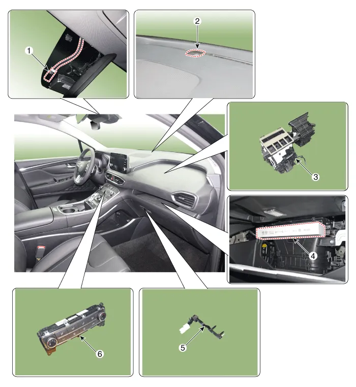 4. Air filter 5. Evaporator Temperature Sensor 6. Heater & A/C control unit |