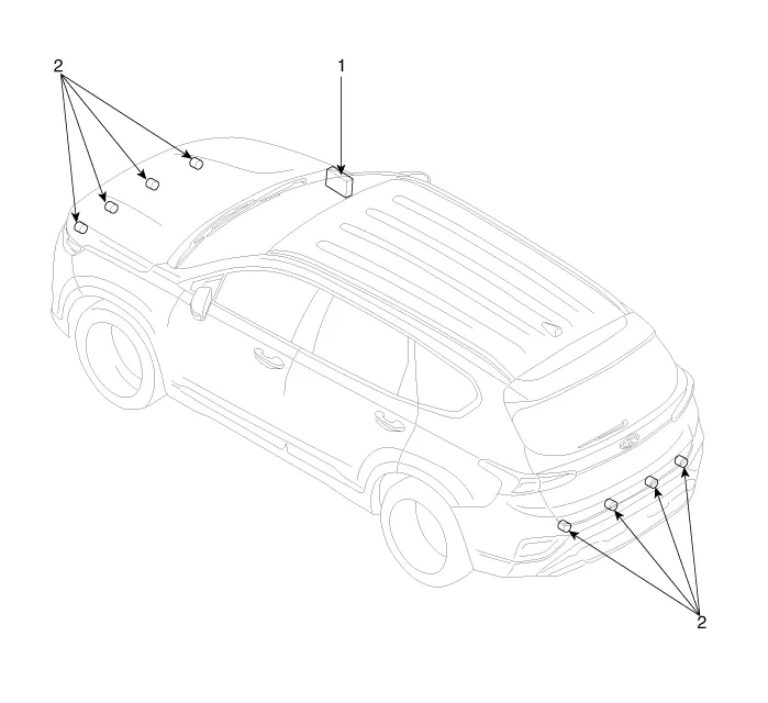Removal Parking Collision-Avoidance Assist (PCA) Unit 1. Disconnect the negative (-) battery terminal. 2. Remove the ADAS PRK Unit. (Refer to Advanced Driver Assistance System (ADAS) - "Driver Parking Assistance System") Parking Collision-Av