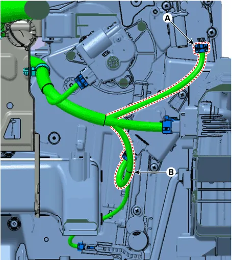 Disconnect the connector (A) and the mounting wiring fasteners in the