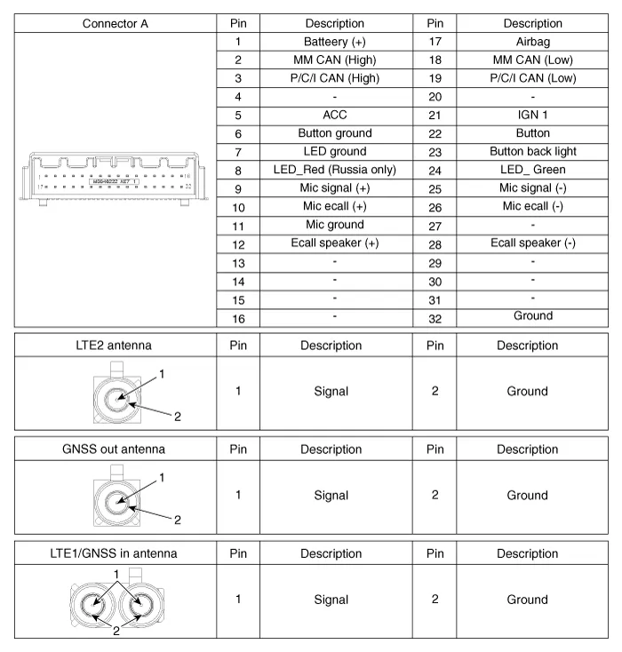 Components 1. Emergency call unit 2. Emargency call system button 3. Emargency call system MIC 4. Roof antenna 5.