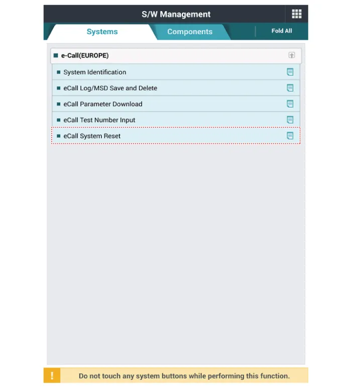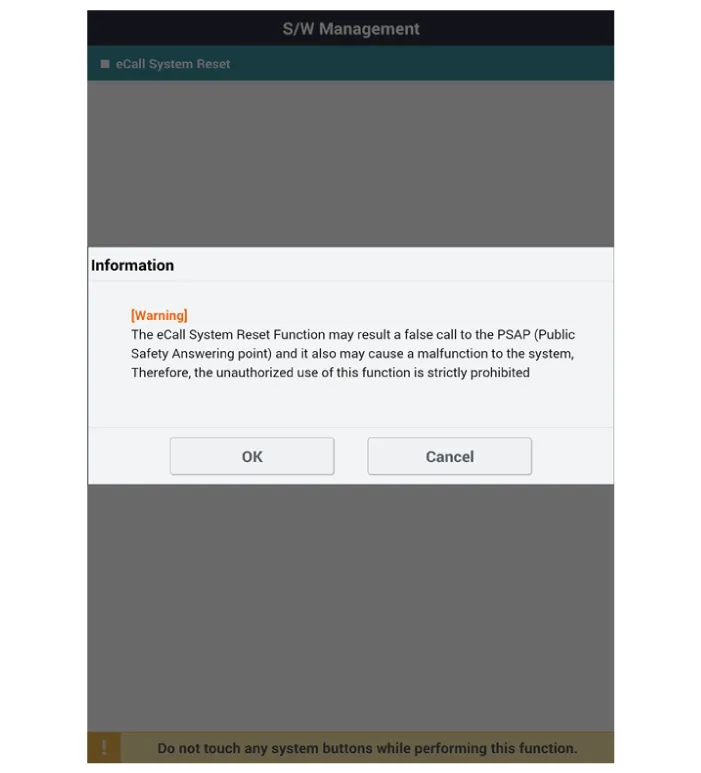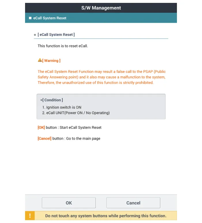 The eCall System Reset function is to reset when eCall is locked or stopped.