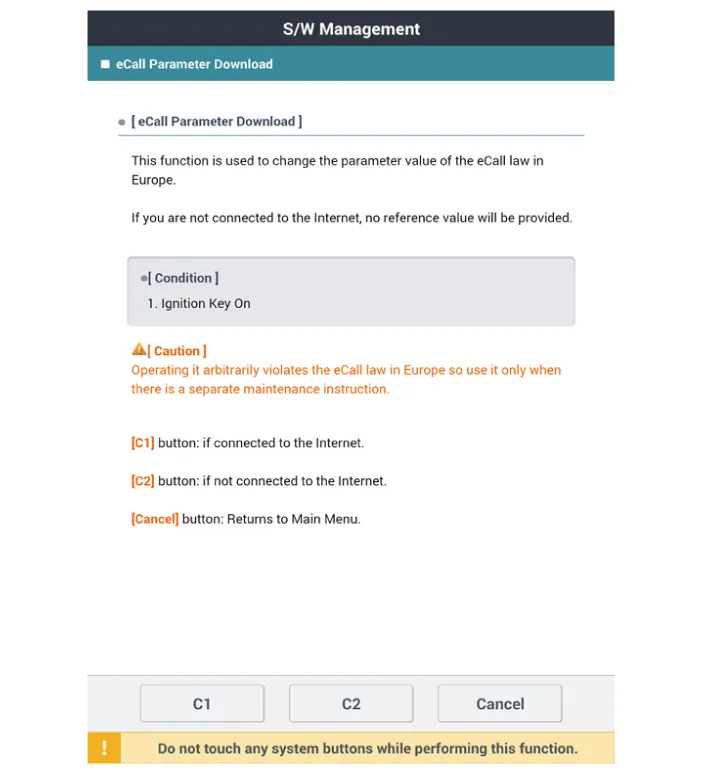 Follow the screen instructions to perform the "eCall Parameter Download".