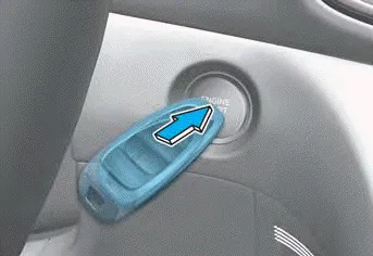 If the smart key battery is weak or the smart key does not work correctly, you can start the vehicle by pressing the Engine Start/Stop button with the smart key in the direction of the picture above.