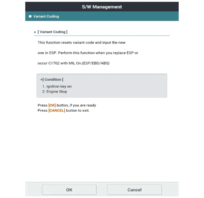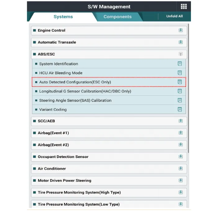 Select the "vehicle model" and "ESP/ESC" on diagnostic tool vehicle