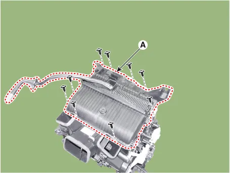 Loosen the mounting screws and remove the evaporator core cover (A).