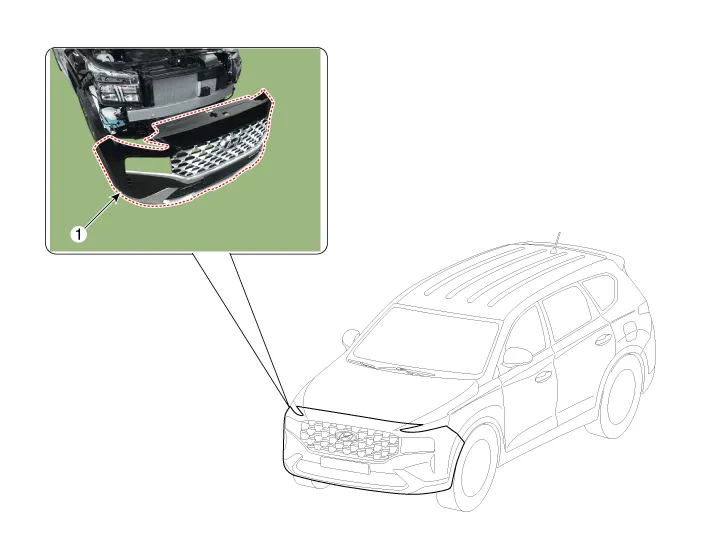 Components 1. Front bumper side bracket [LH] 2. Front bumper side bracket [RH] 3. Front bumper assembly