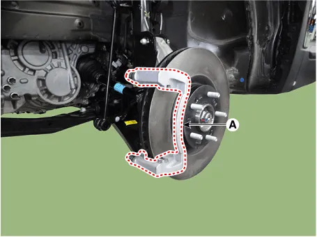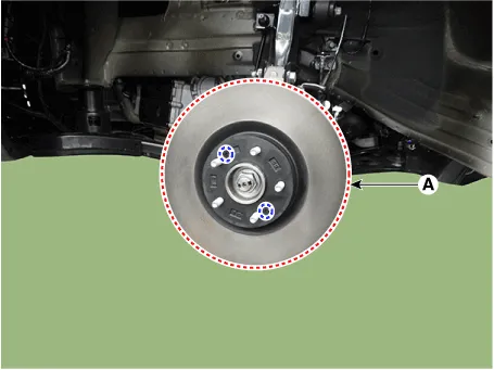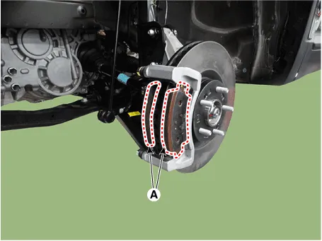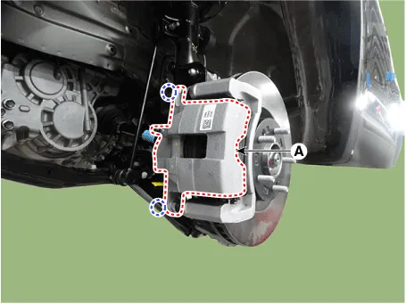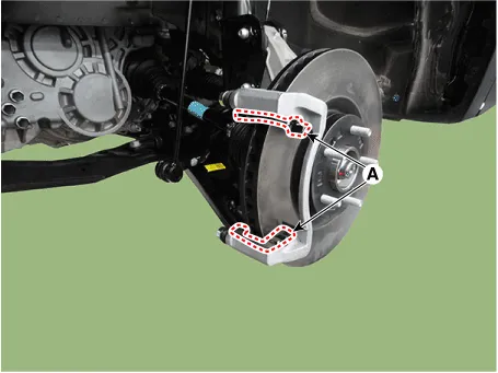 Remove the caliper carrier (A) by loosening the caliper mouniting bolts.