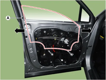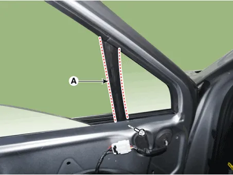 Remove the front door belt inside weatherstrip (A).