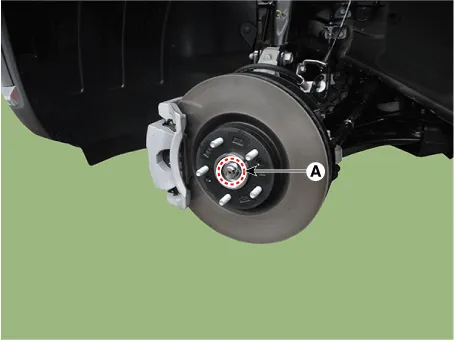 Loosen the driveshaft caulking nut (A) from the front hub.