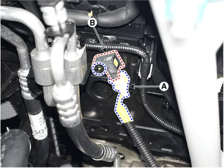 front impact sensor (B) after loosening the mounting bolt.