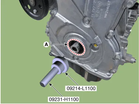Install the crankshaft front oil seal (A) using SST (09214 - L1100,